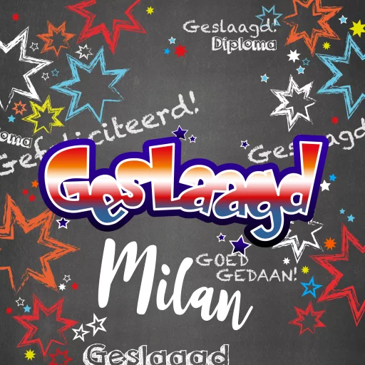 Het bord heeft een krijtbord-look met een vrolijke versiering in de kleuren van de Nederlandse vlag in graffiti stijl. Plaats de naam van de geslaagde op het bord en maak jouw geslaagd decoratie extra speciaal.