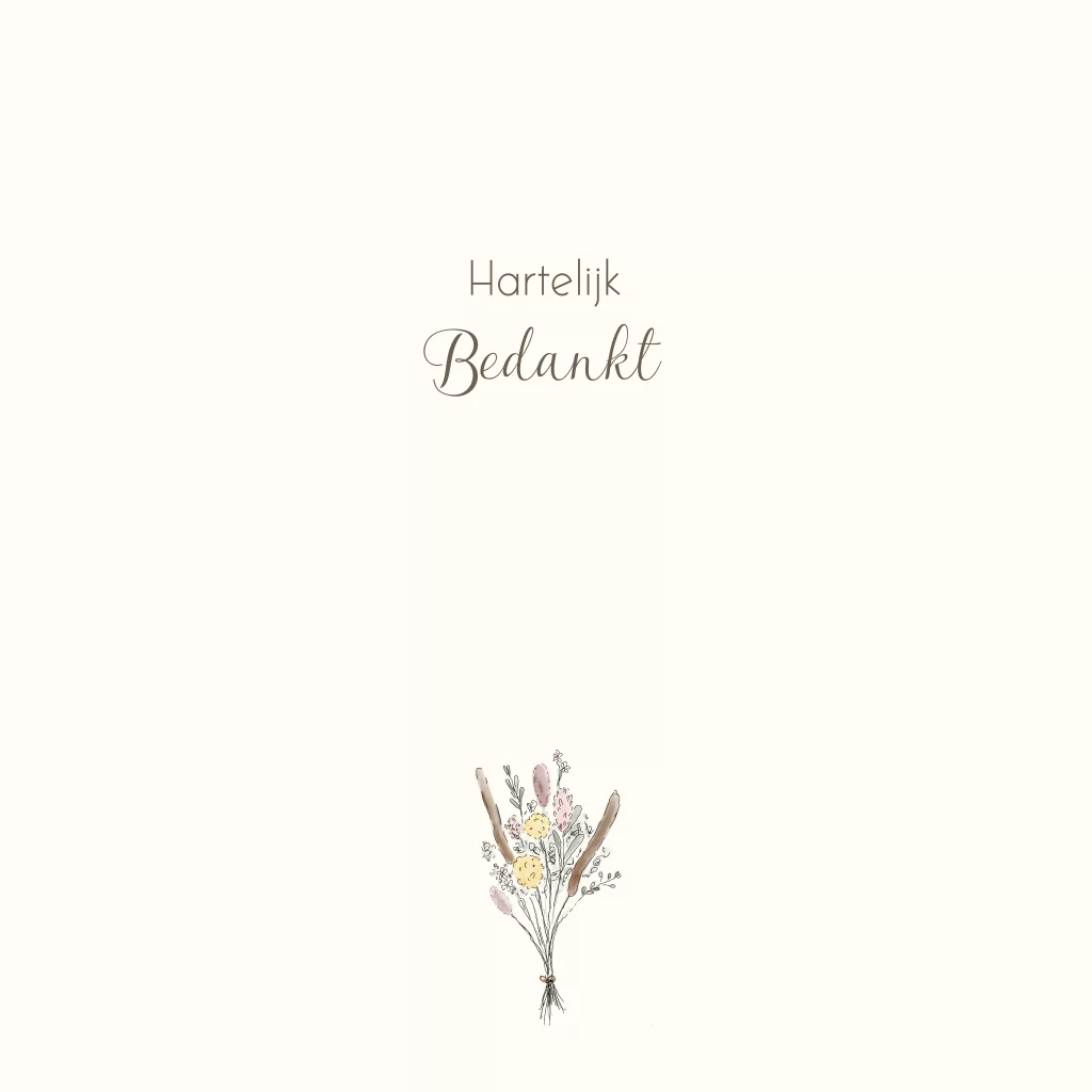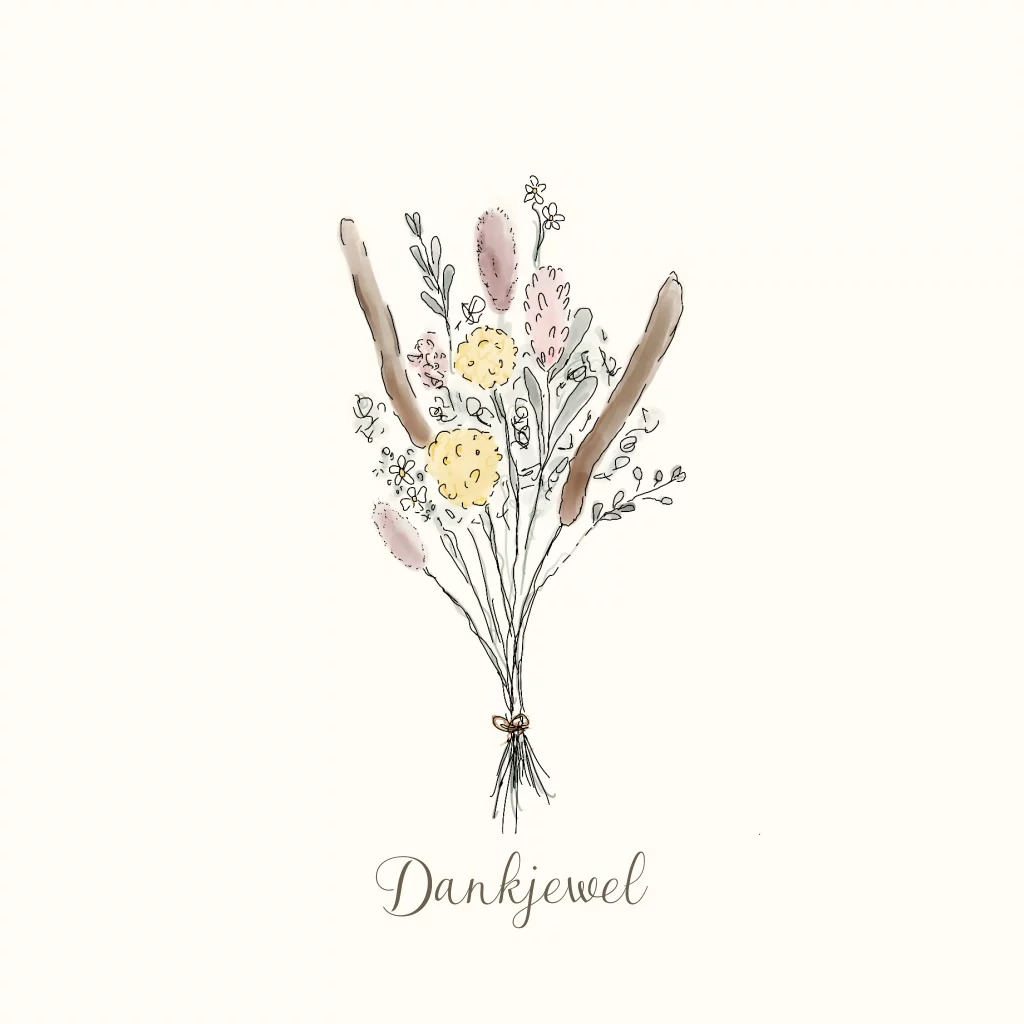 Bedankkaart. Stijlvolle wenskaart met getekende droogbloemen. Lief kaartje om rechtstreeks te laten verzenden en zo iemand te bedanken.