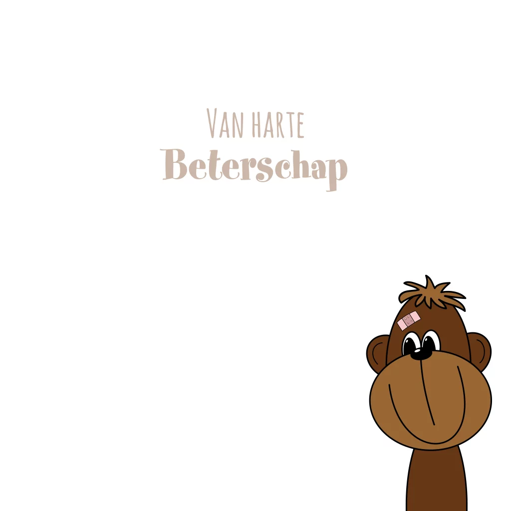Breng een glimlach op het gezicht van een ziek kind met onze Kinder Beterschapkaart. Deze vrolijke kaart toont een lachend aapje met een pleister op zijn kopje, klaar om op te vrolijken en troost te bieden. Je kunt de kaart eenvoudig aanpassen naar wens en direct laten verzenden naar de kleine patiënt. Een liefdevolle en opbeurende manier om je goede wensen over te brengen tijdens hun herstel!