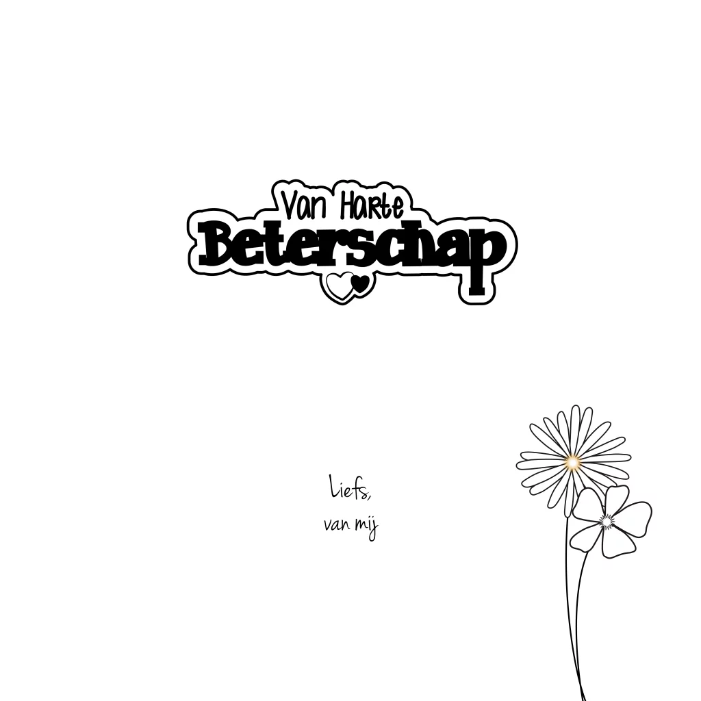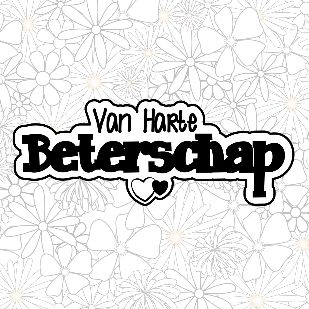 Beterschap. Kaart met een zwart-wit bloemen patroon.