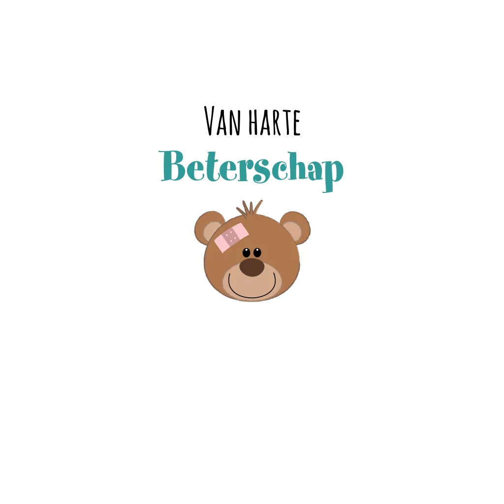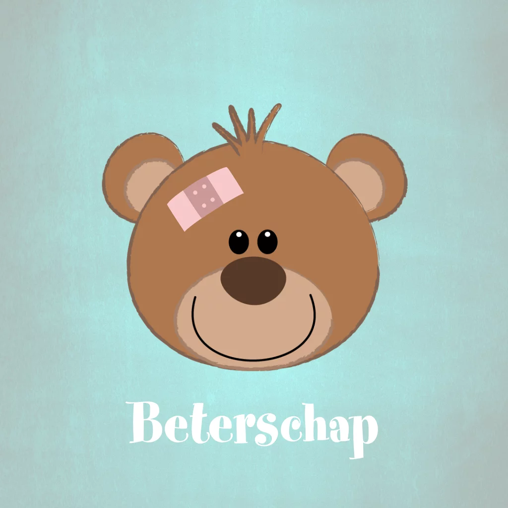 Beterschap. Kinderkaart met een schattig beertje met een pleister.