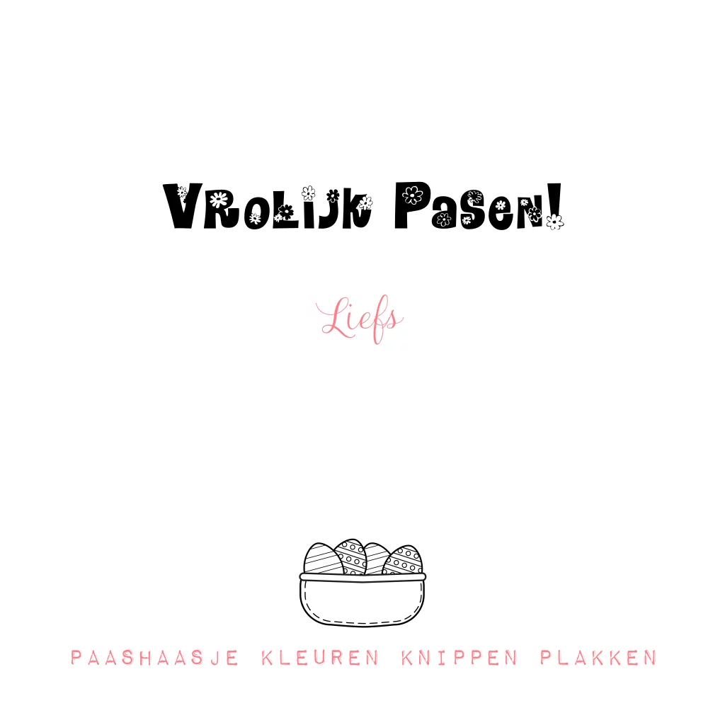 Pasen | Paaskaart D.I.Y. Deze kaart is een leuke knutselkaart voor de Pasen. Op de kaart staat een afbeelding van een vrolijke paashaas met paaseieren. Deze kun je kleuren, knippen en plakken.