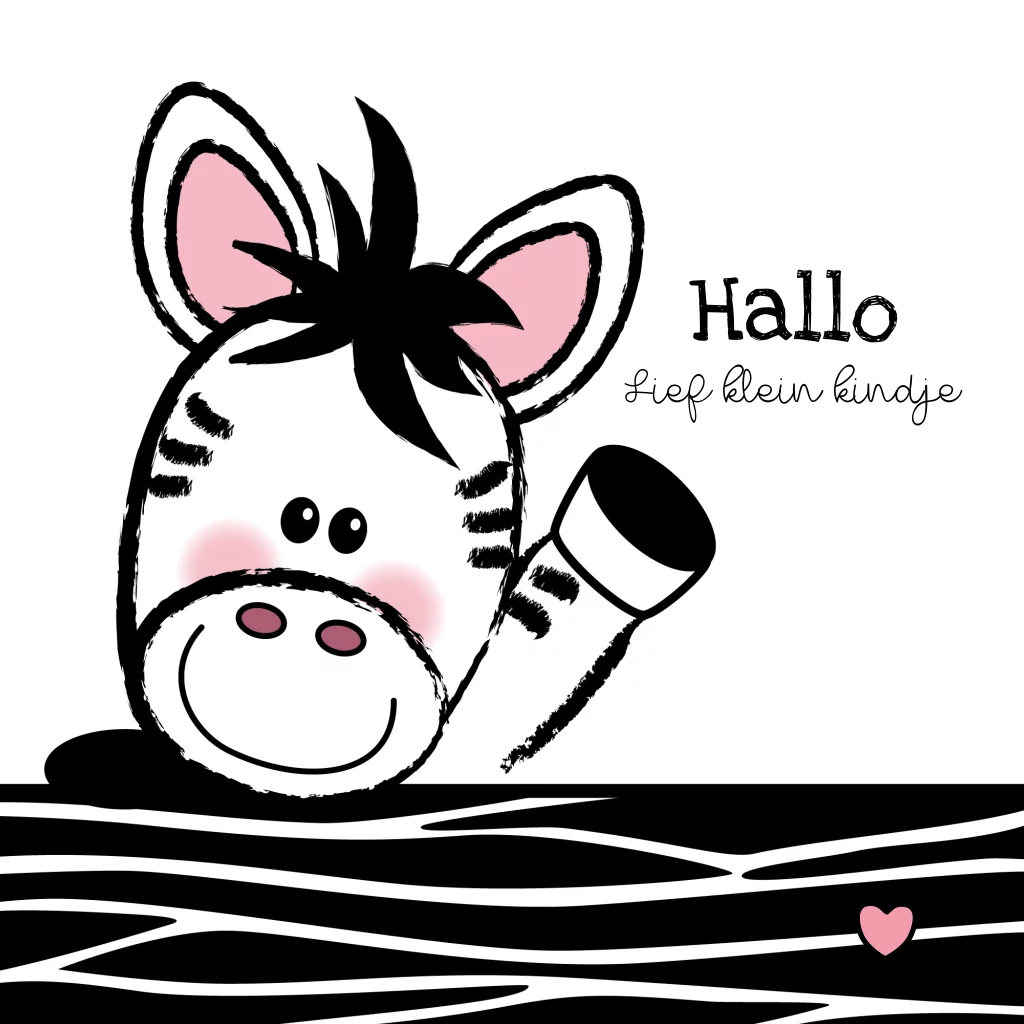 Felicitatie geboorte babykaart met een lieve zebra en een hartje