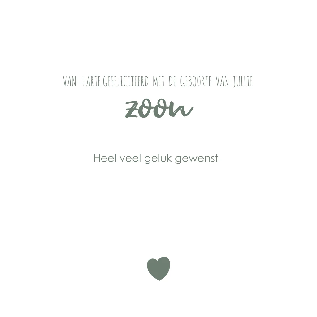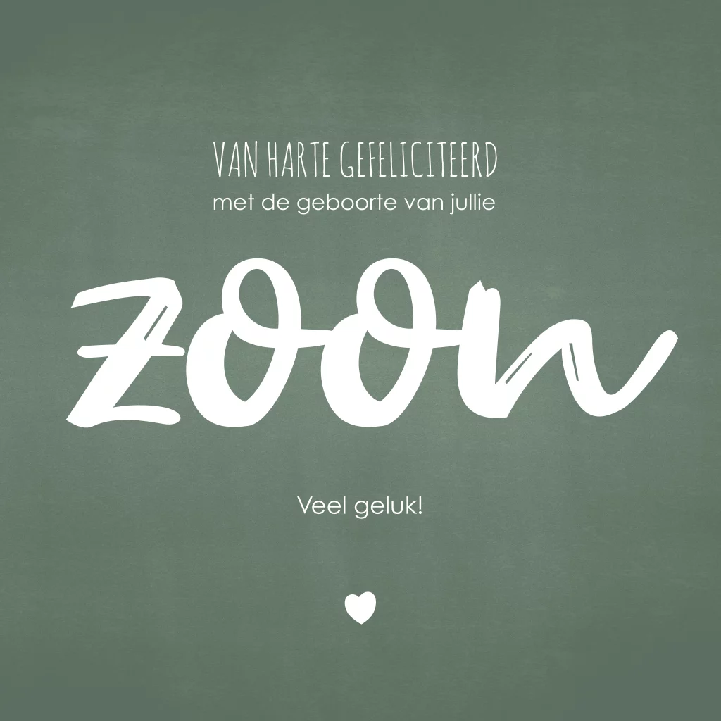 Stoere felicitatie kaart voor de geboorte van een jongen. Groene achtergrond met een witte tekst.