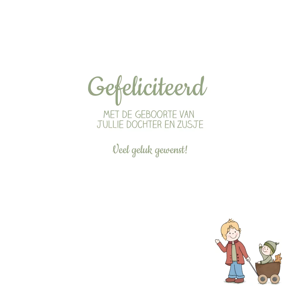Felicitatie geboorte jongen- jongen met zusje in bolderkar