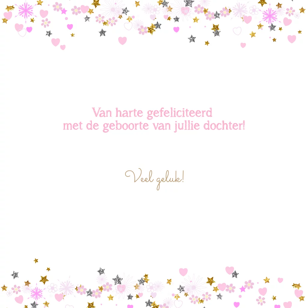 Felicitatie geboorte meisje kraft hartjes sterren en bloemen