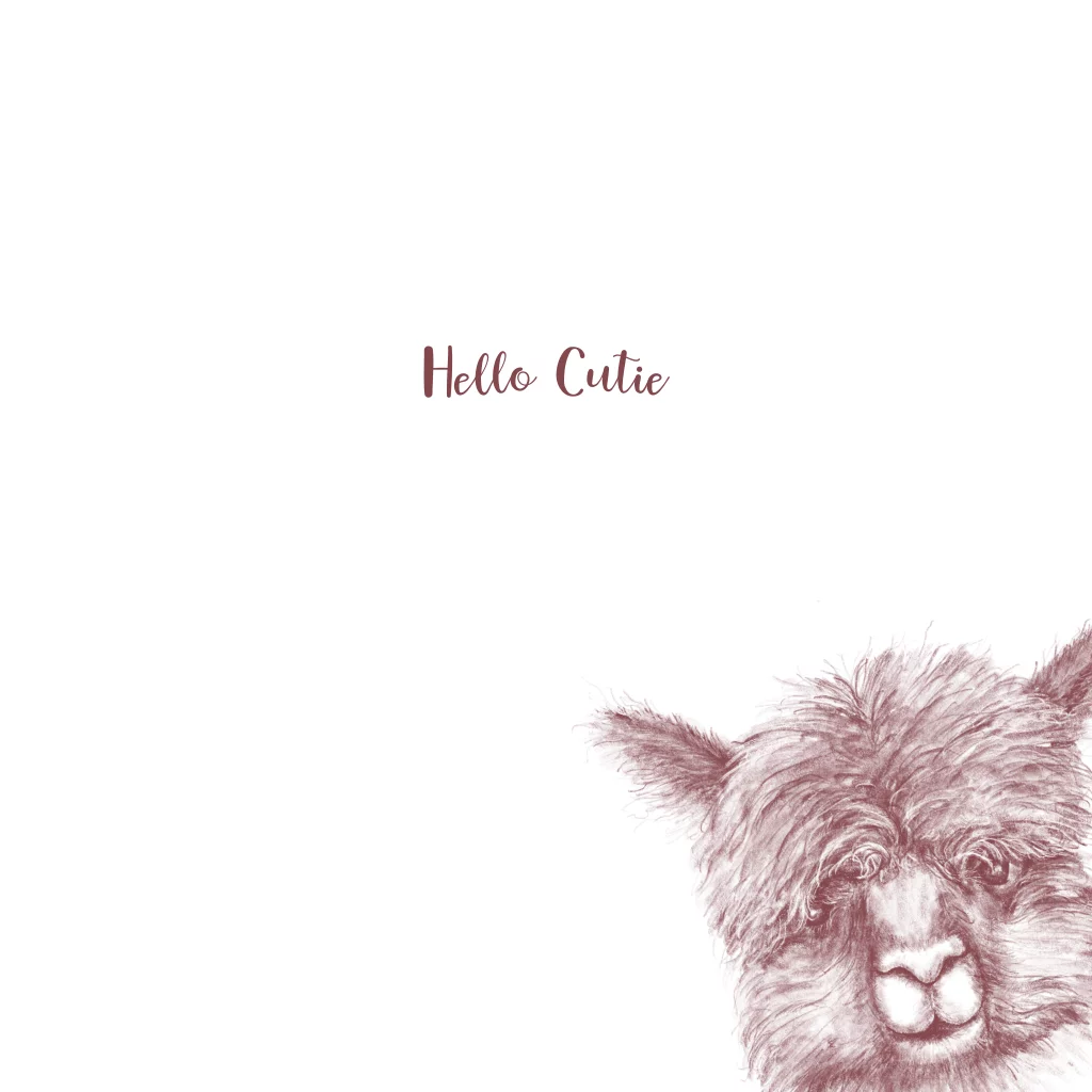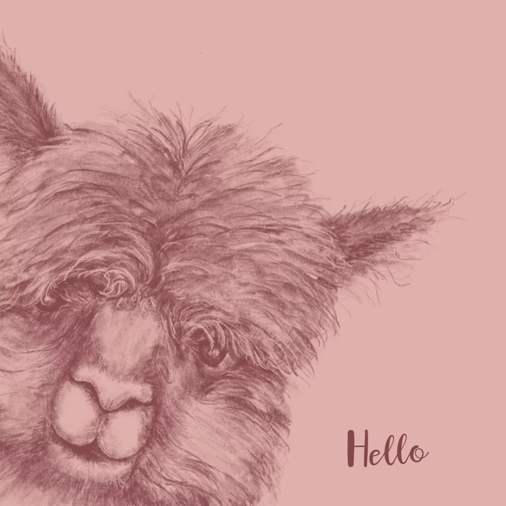 Felicitatie voor de geboorte van een meisje. Grappige, oudroze wenskaart met een tekening van een alpaca. Plaats eenvoudig een persoonlijke boodschap op de kaart en verras de kersverse ouders met een felicitatie kaartje in de brievenbus.