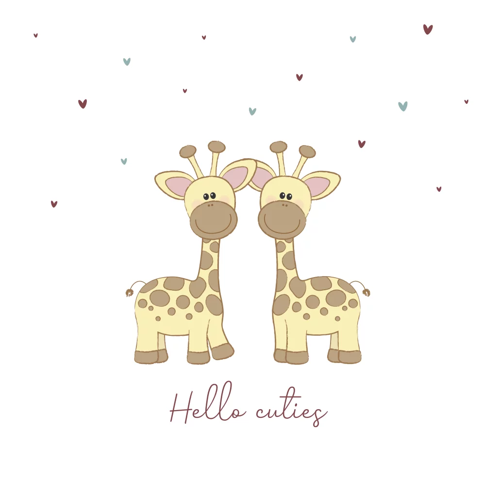 Felicitatie geboorte tweeling met lieve giraffes en hartjes