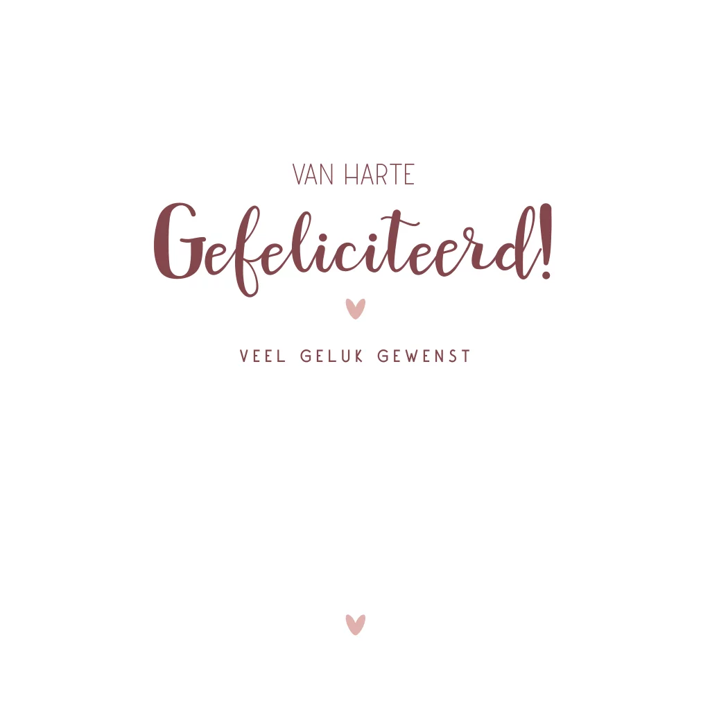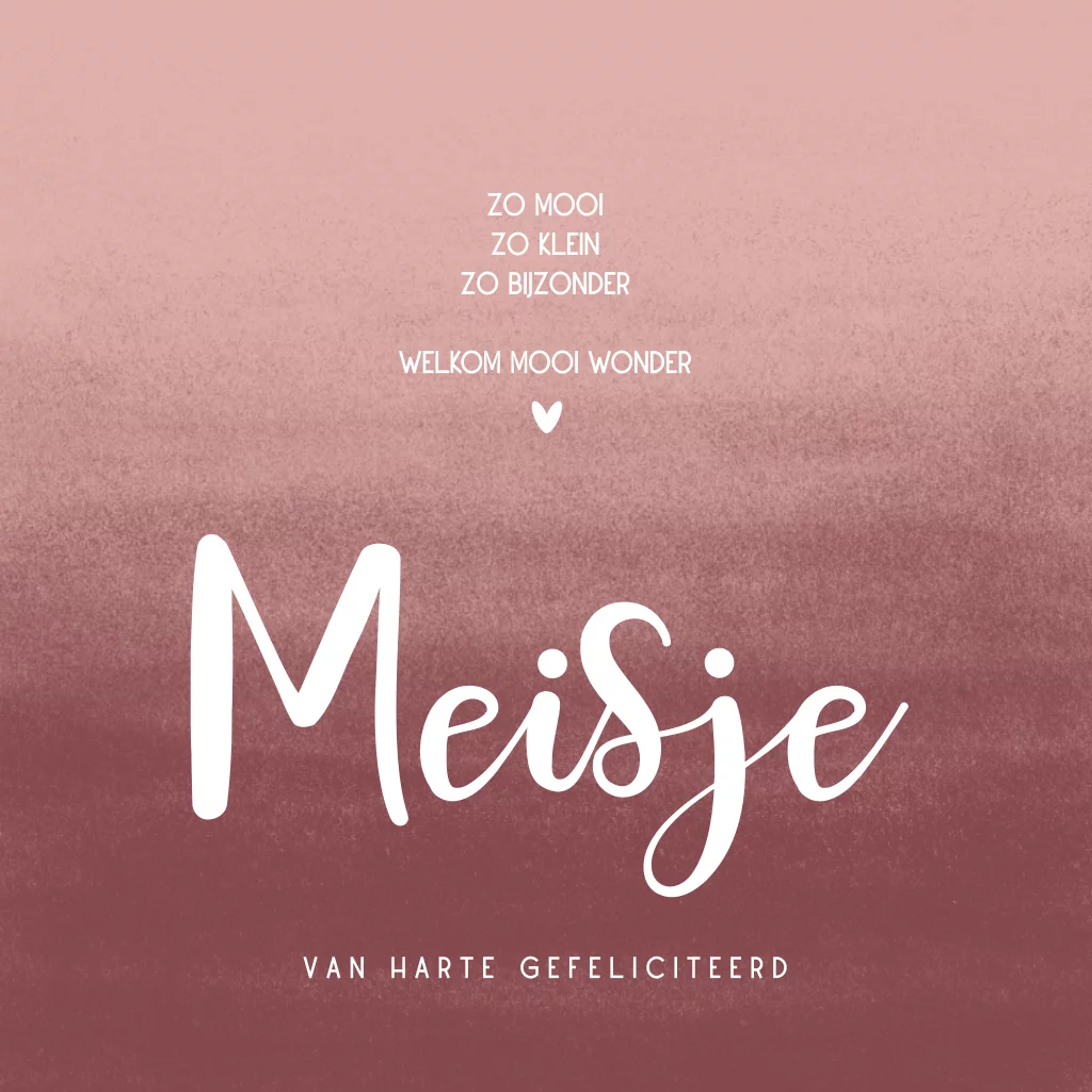 Stoer en stijlvol felicitatie kaartje voor de geboorte van een meisje met een lief gedichtje. Het gedichtje op de voorkant van de kaart kan worden aangepast of worden verwijderd. Pas de kaart naar wens aan en stuur de kersverse ouders jouw unieke felicitatie kaart.