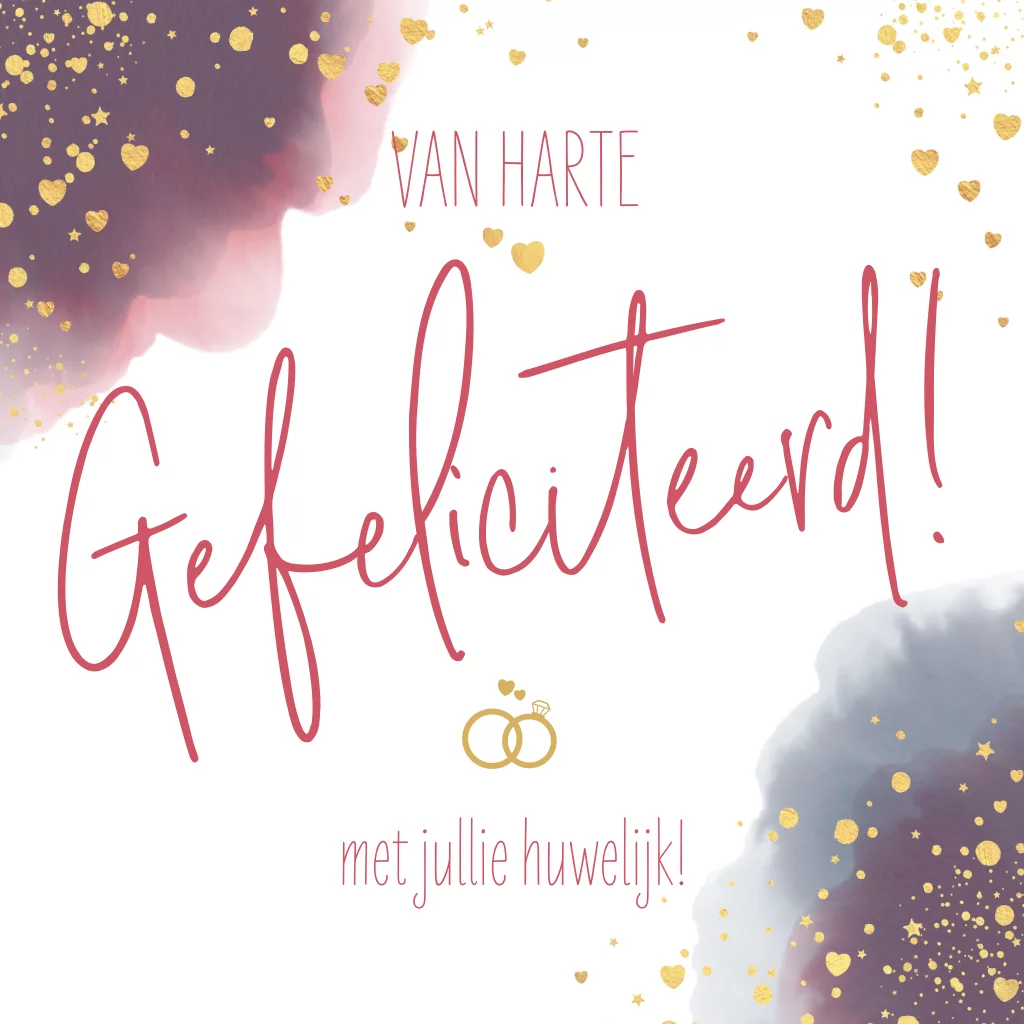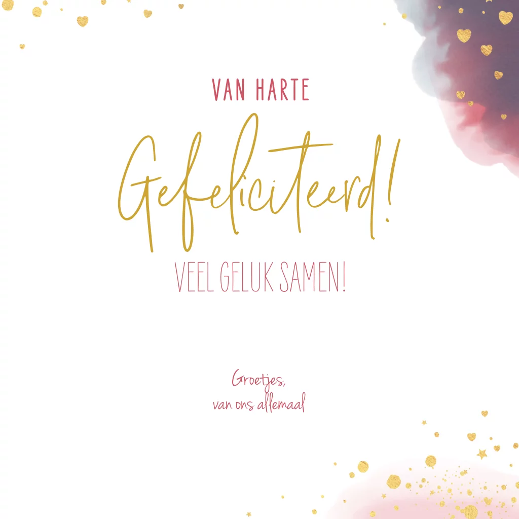 Felicitatie huwelijk waterverf goudkleurige hartjes en stippen