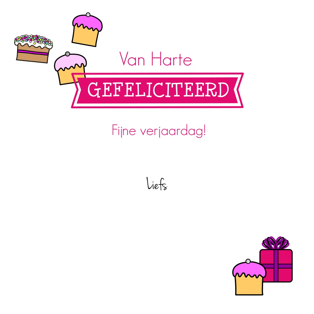 Verjaardagskaart eigen foto taartjes en cadeautjes