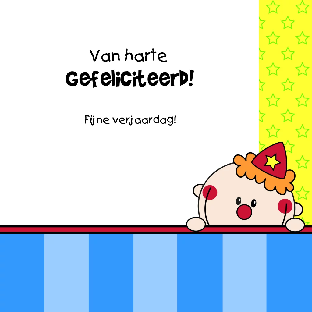 Verjaardagskaart jarig clowntje