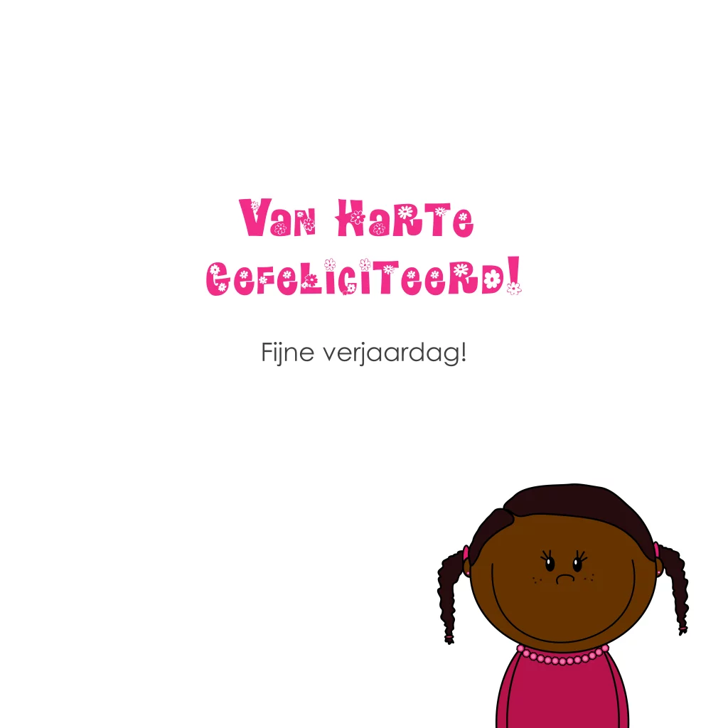 Roze verjaardagskaart lief meisje met 2 staartjes