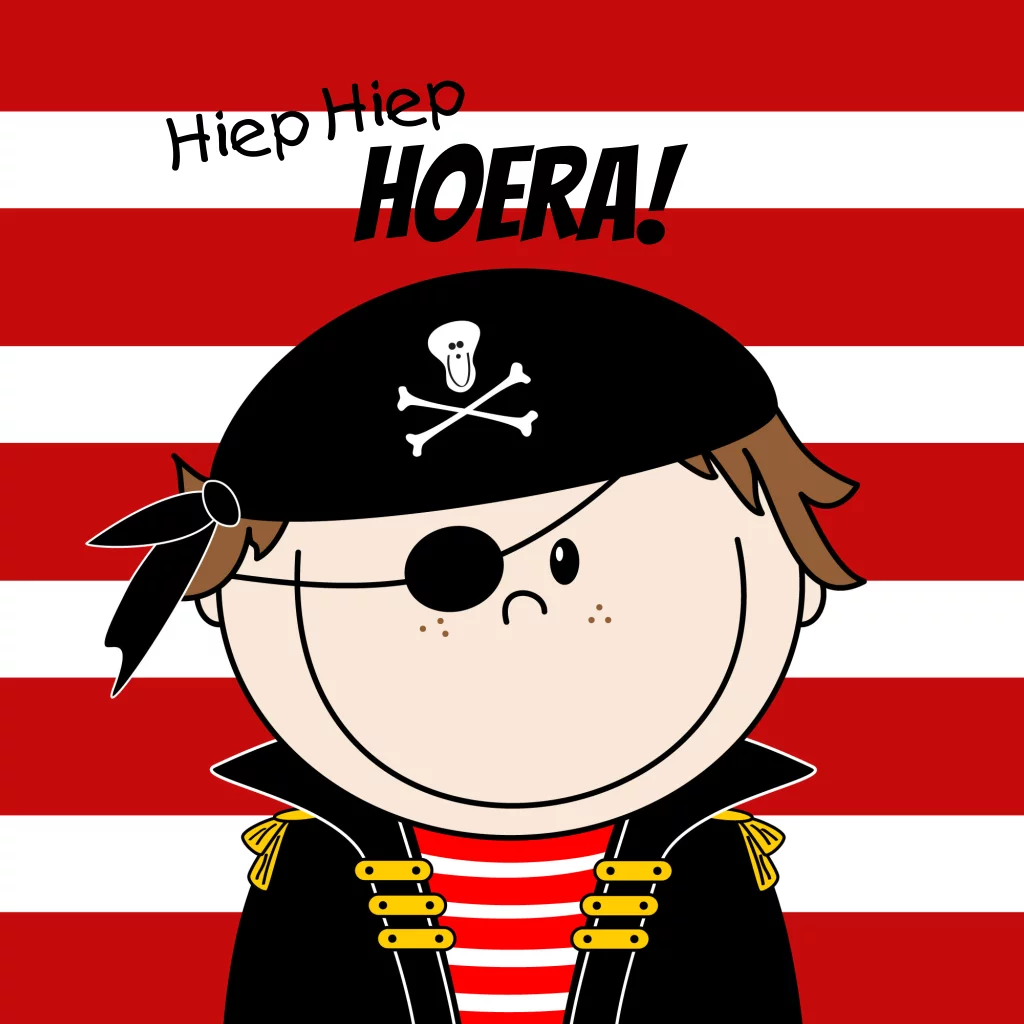 Leuke verjaardagskaart met een illustratie van een schattige, vrolijke piraat.