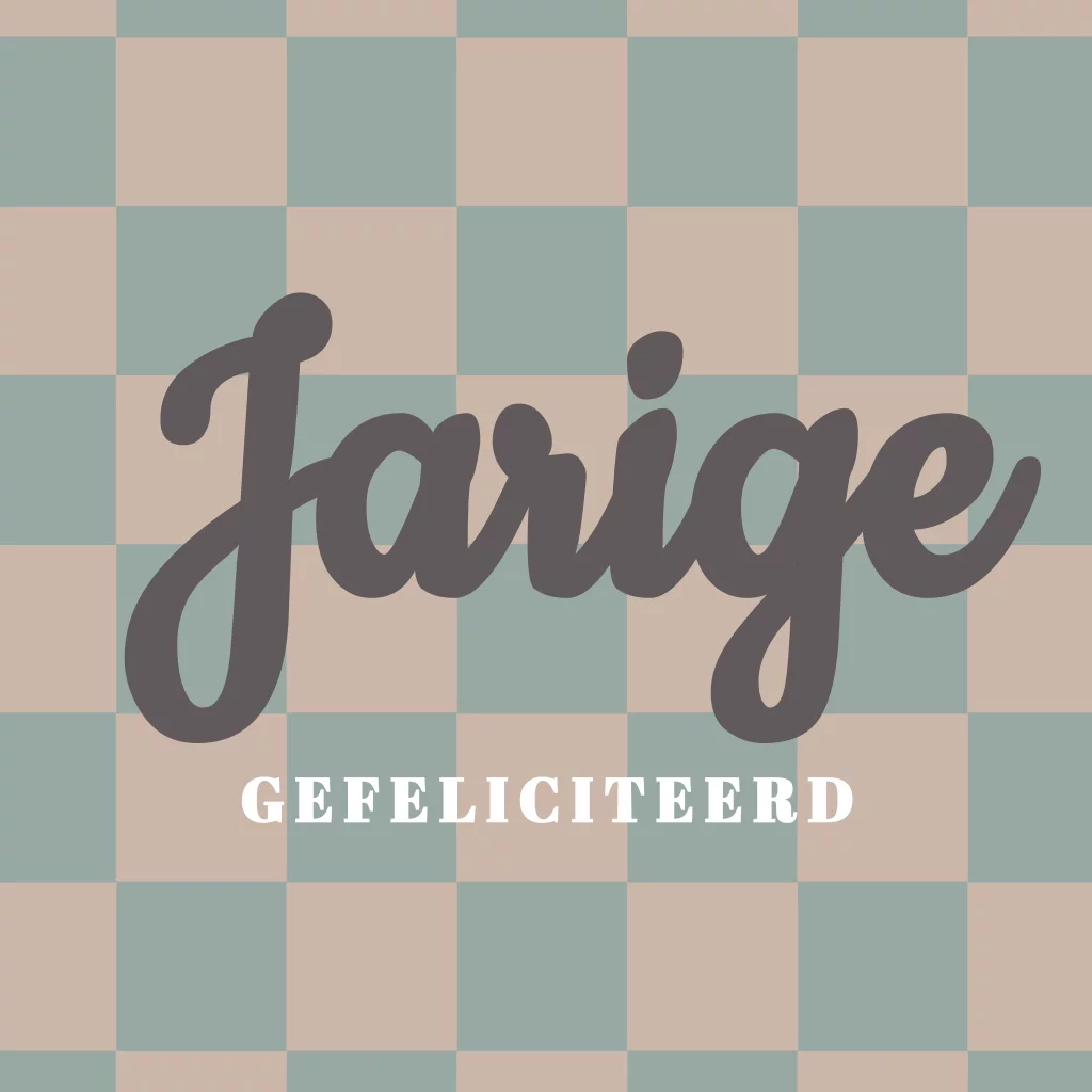Feliciteer de jarige in stijl met onze stoere verjaardagskaart! Deze prachtige kaart heeft een eigentijds blokken-patroon in warme beige en diepe petrol kleuren, en bevat een grote, opvallende felicitatie tekst om de jarige te verrassen.