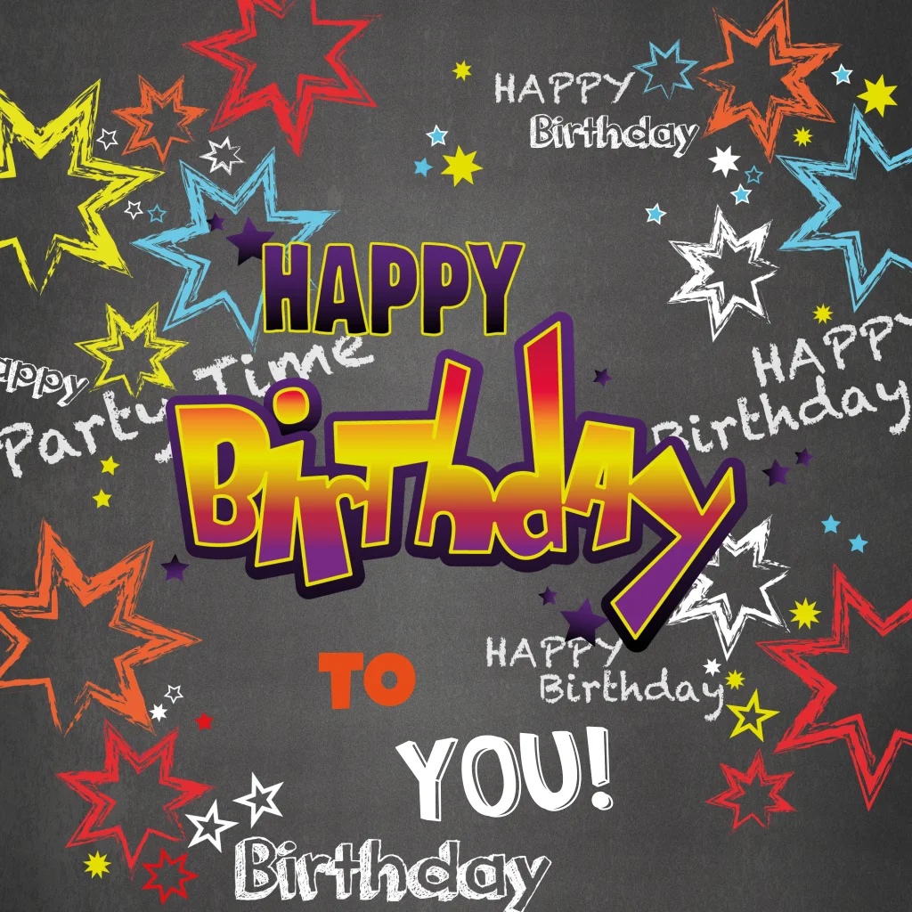 Stoere verjaardagskaart voor jongens. Krijtbord look en graffiti stijl. Tip: maak je kaart persoonlijk door het woord "YOU!" te vervangen voor de naam van de jarige.