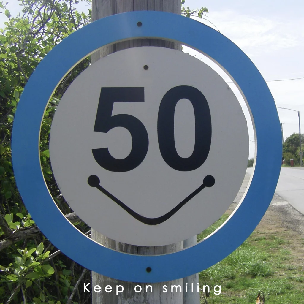 Grappige en originele verjaardagskaart met een verkeersbord met een smile. 50 jaar! Keep on smiling.