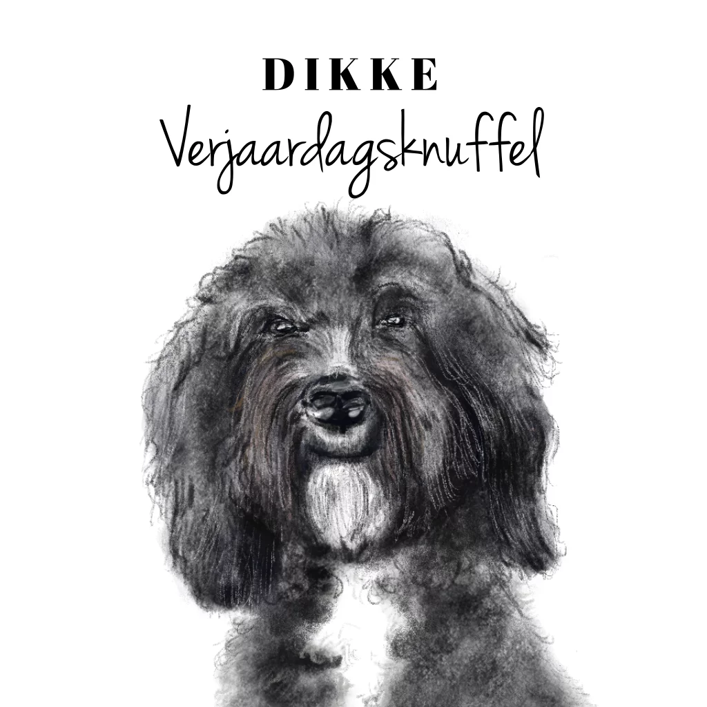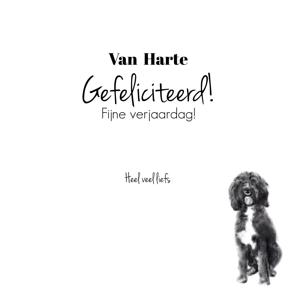 Verjaardagskaart tekening grote lieve hond