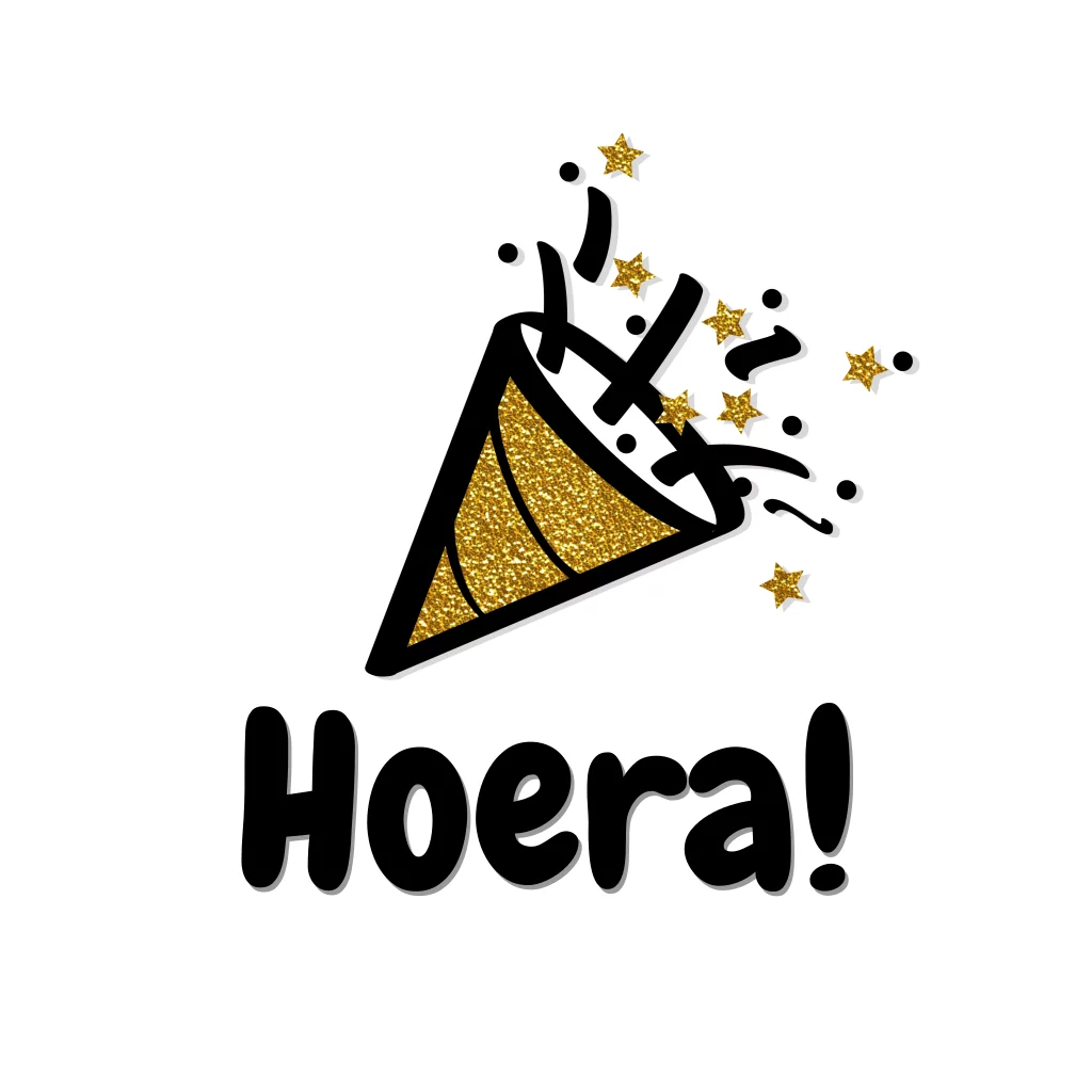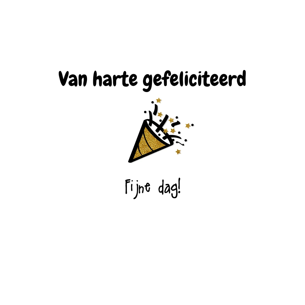 Verjaardagskaart zwart-wit met goud-kleurige feesttoeter met sterren. (geen goudfolie of echte glitters)