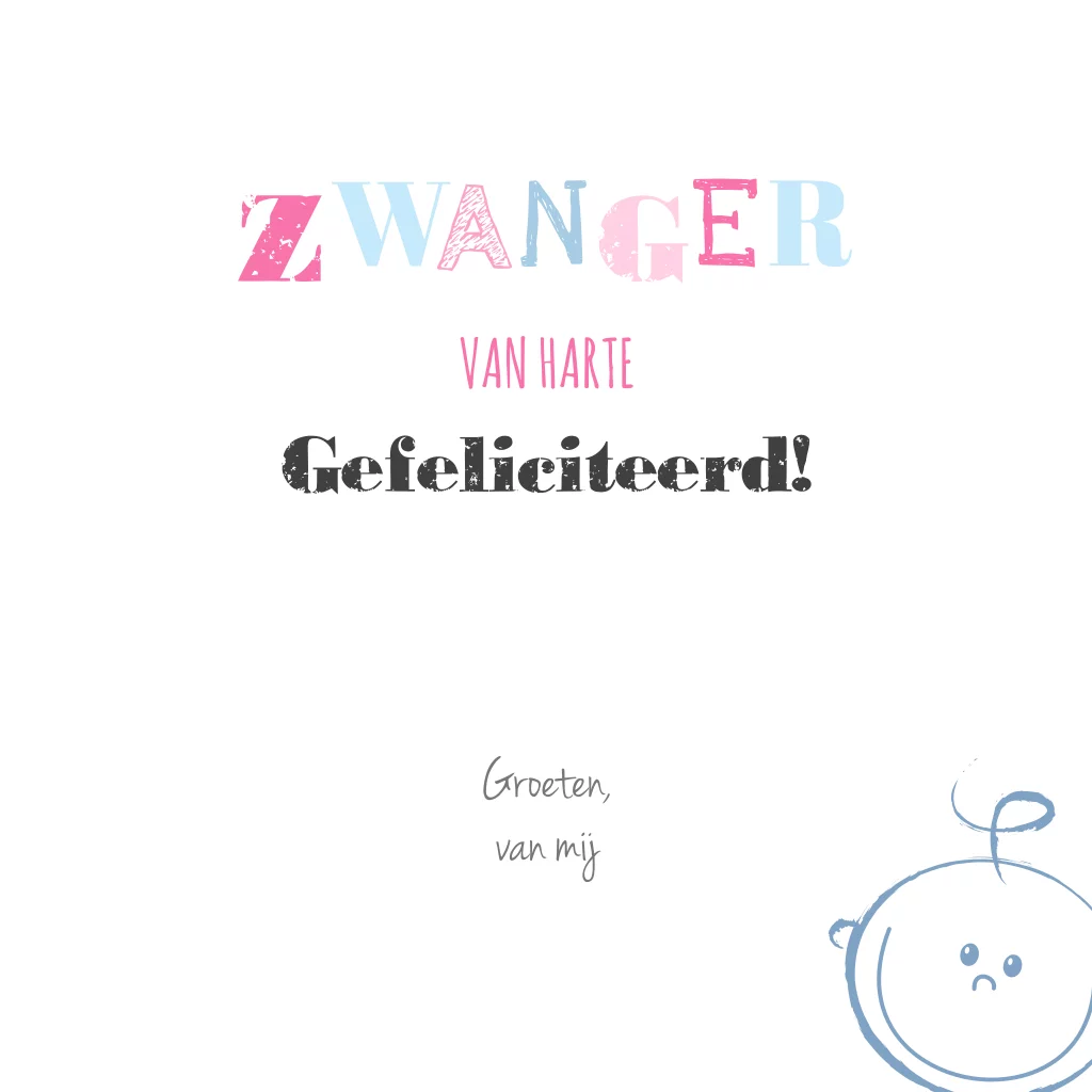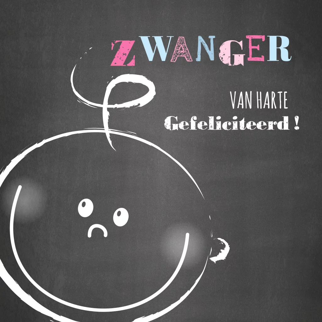 Zwanger! Lief en stoer felicitatie kaartje voor een zwangerschap met krijtbord look en een getekend baby gezichtje.
