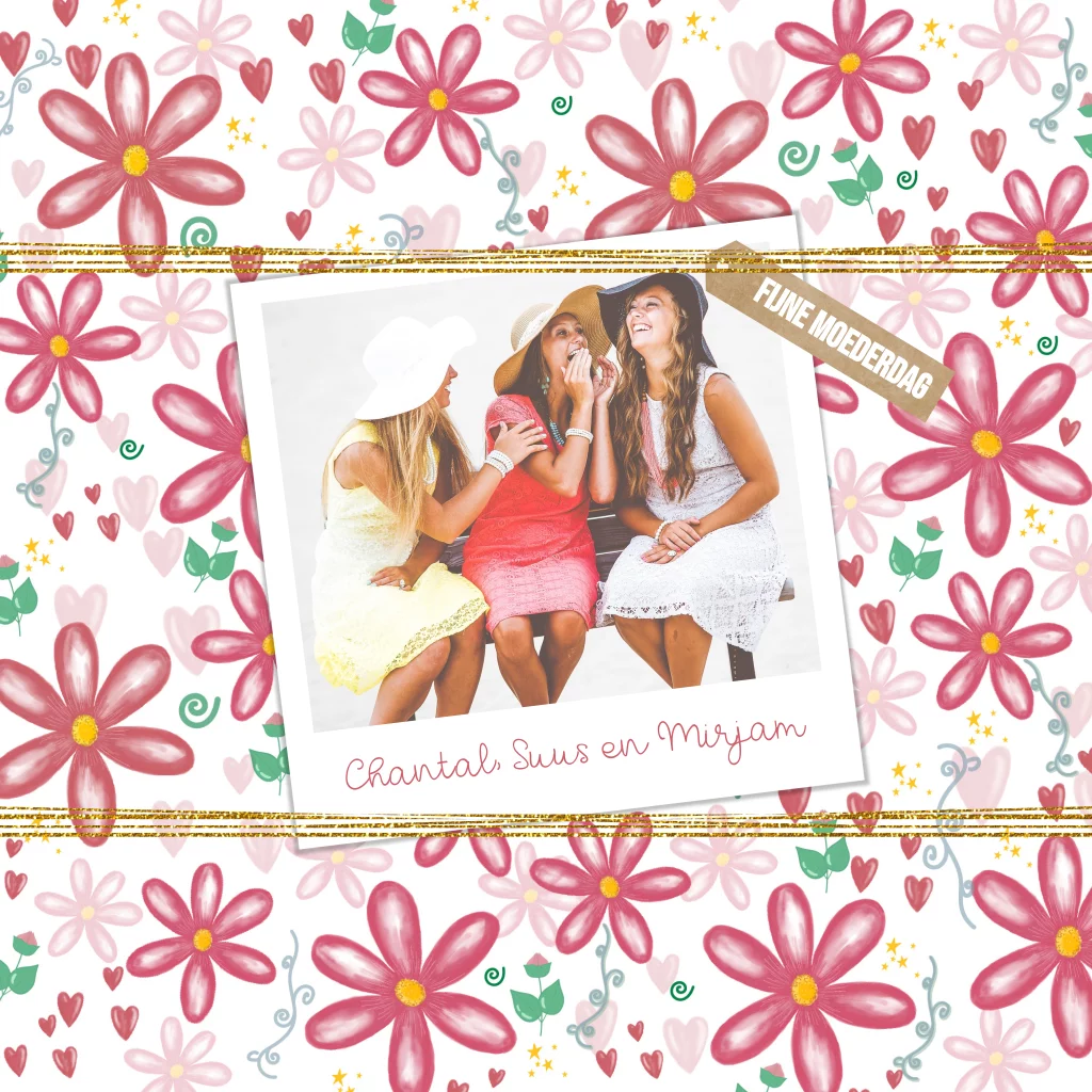 Fleurige moederdagkaart met eigen foto op een bloemen patroon