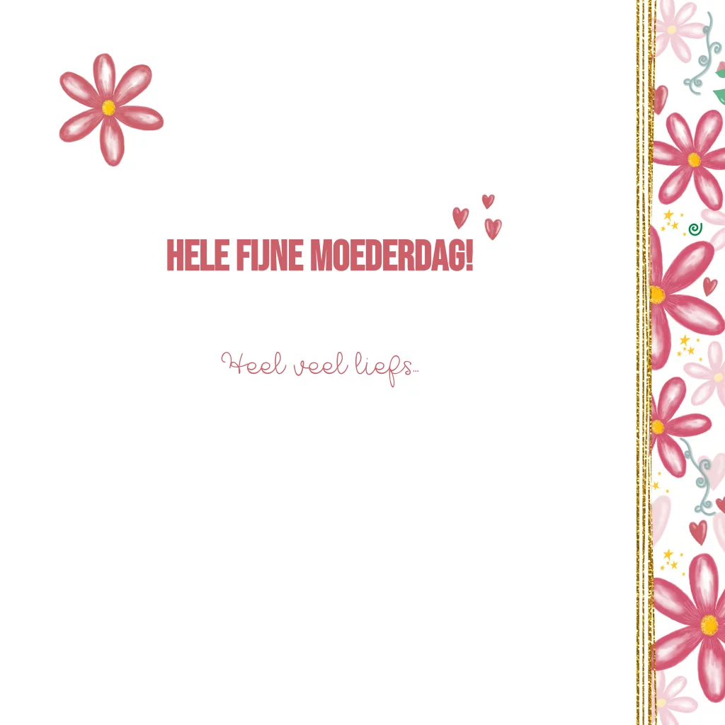 Fleurige moederdagkaart met je eigen foto op een vrolijk patroon van bloemen, hartjes, blaadjes en sterren. De teksten kunnen worden aangepast, waardoor je deze kaart ook voor andere gelegenheden kunt gebruiken. Vervang de foto, pas de teksten aan en maak er zo je eigen unieke moederdagkaart van.