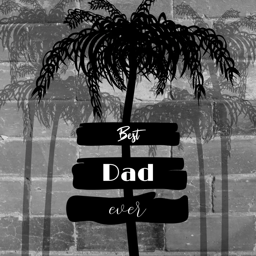 Stoere vaderdagkaart met palmbomen en wegwijzer. Best dad ever.
