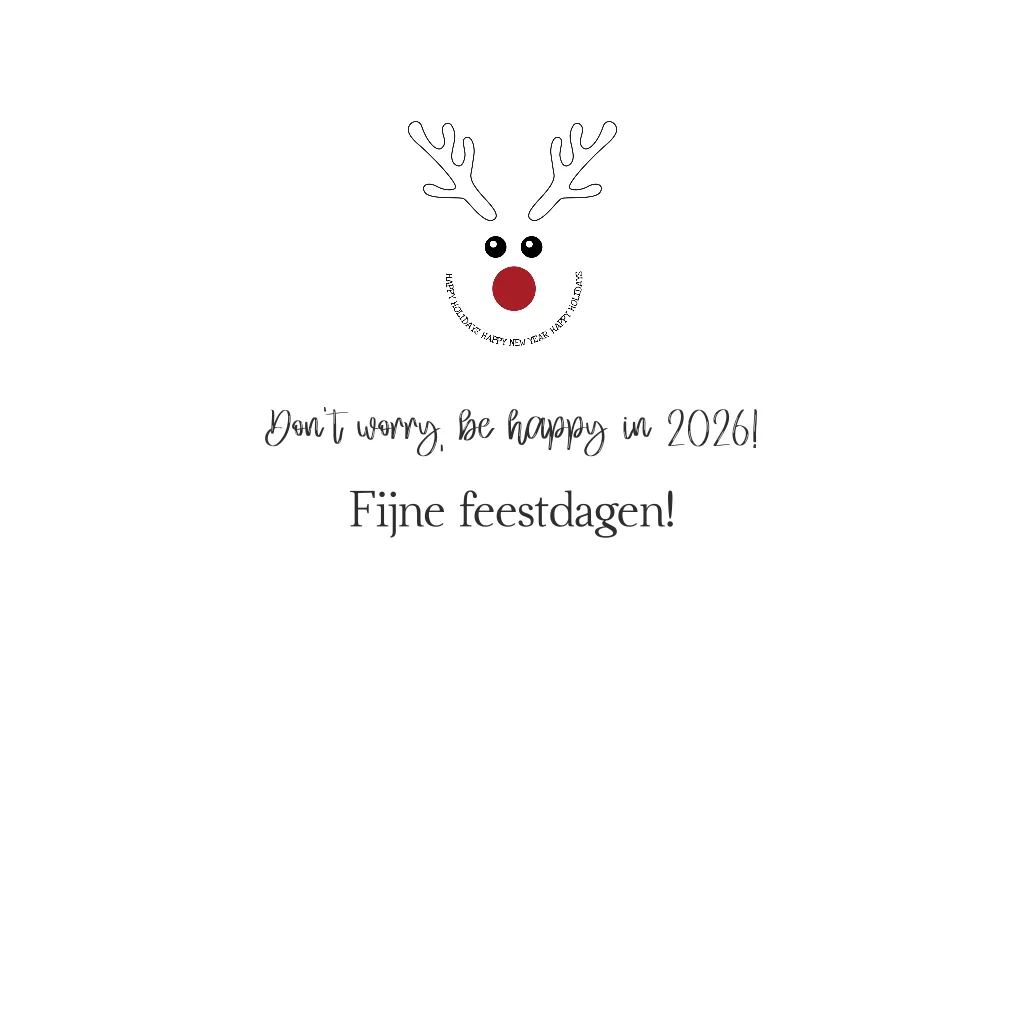Kerst wenskaart grappig Rendier don't worry be happy in 2026
