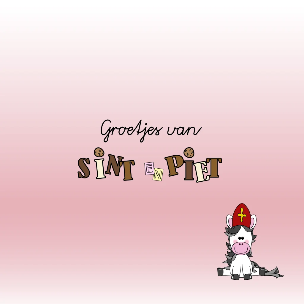 Verspreid Sinterklaasvreugde met ons schattige roze Sinterklaaskaartje! Met een lief Sinterklaas paard met een mijter op zijn hoofd, en overladen met cadeautjes en chocoladeletters. Maak het extra speciaal door de naam van de ontvanger op de voorkant van de kaart te plaatsen en verstuur een persoonlijke Sinterklaasgroet. Wie wil jij de groeten doen namens Sint en Piet? Pas de kaart naar wens aan en laat hem direct verzenden voor een vleugje magie tijdens de feestdagen!