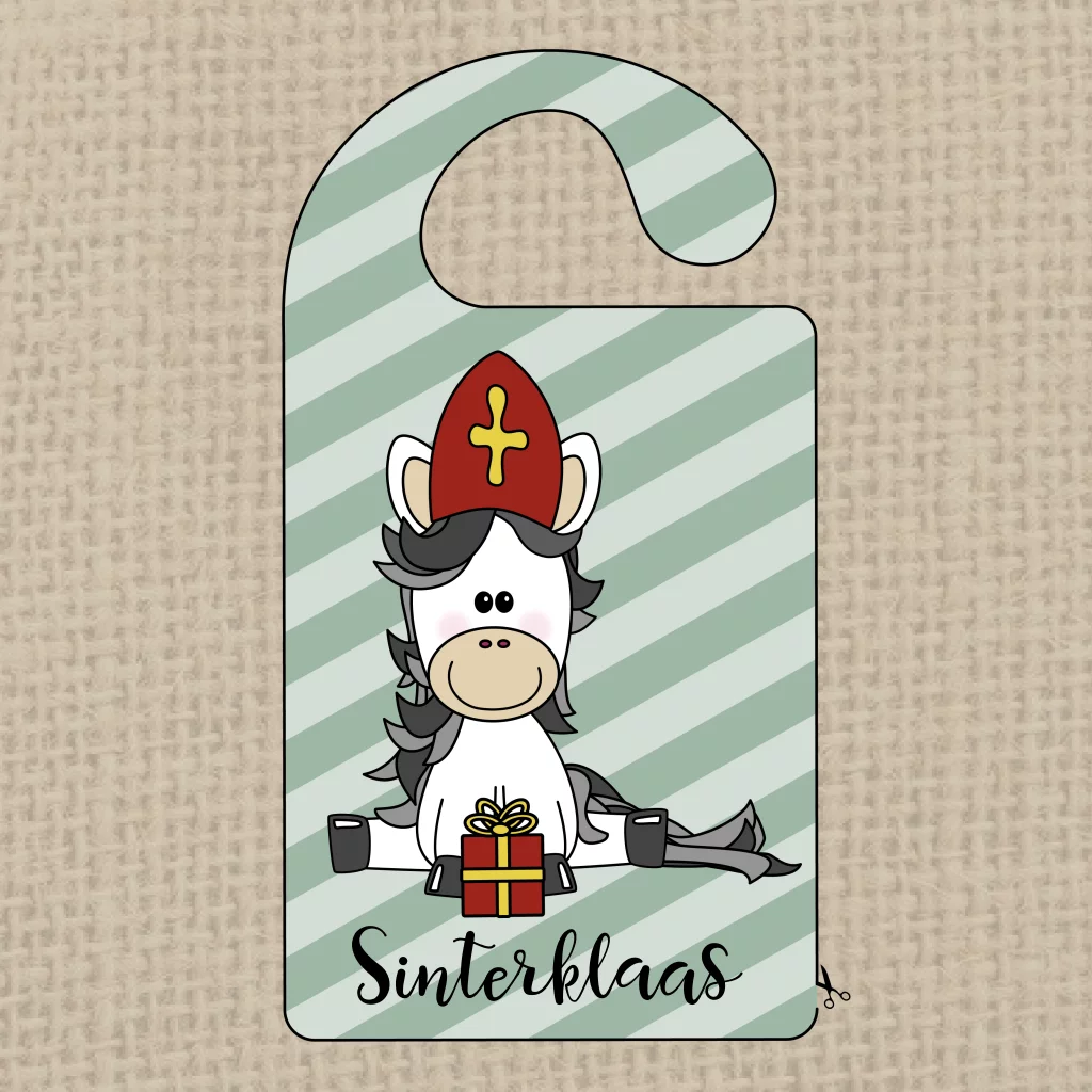 Sinterklaas DIY kinderwenskaart uitknipbare deurhanger met paard