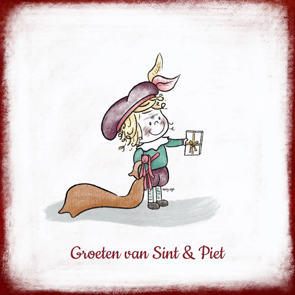 Maak de feestdagen extra speciaal voor kinderen met onze Sinterklaaskaart, voorzien van een leuke en super schattige tekening van een lief hulppietje met een jute zak en cadeautjes. Voeg een persoonlijk tintje toe door de naam van de ontvanger op de voorkant van de kaart te plaatsen. Wie wil jij verrassen met een echte kaart van Sinterklaas? Maak het uniek en laat de groeten doen namens Sint en Piet. Pas de kaart naar wens aan en verzend hem direct voor een magisch moment tijdens de feestdagen!
