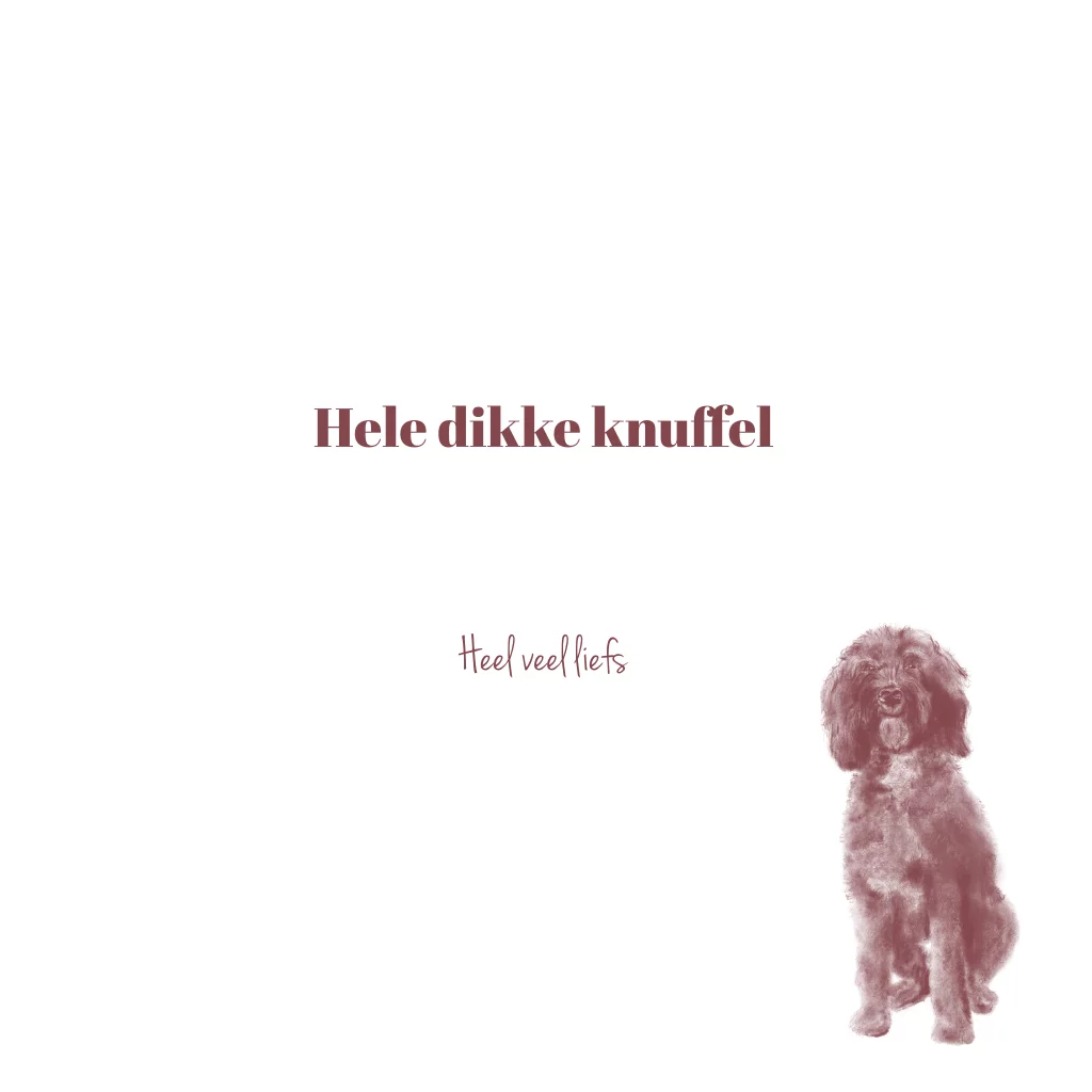 Wenskaart sterkte of medeleven. Mooie kaart met een tekening van een grote lieve hond. Dikke knuffel