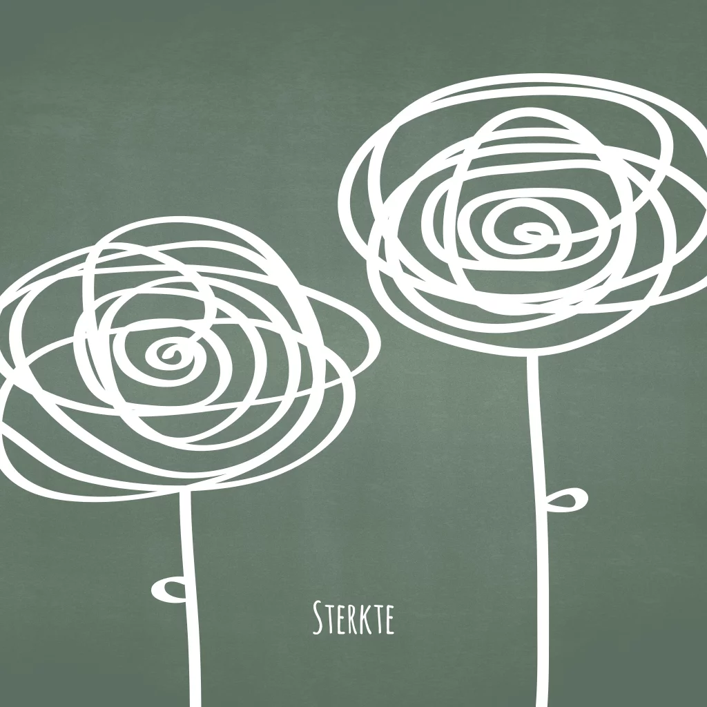 Sterkte - Moderne groene kaart met 2 getekende bloemen