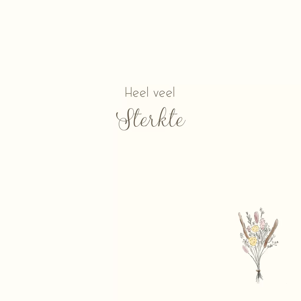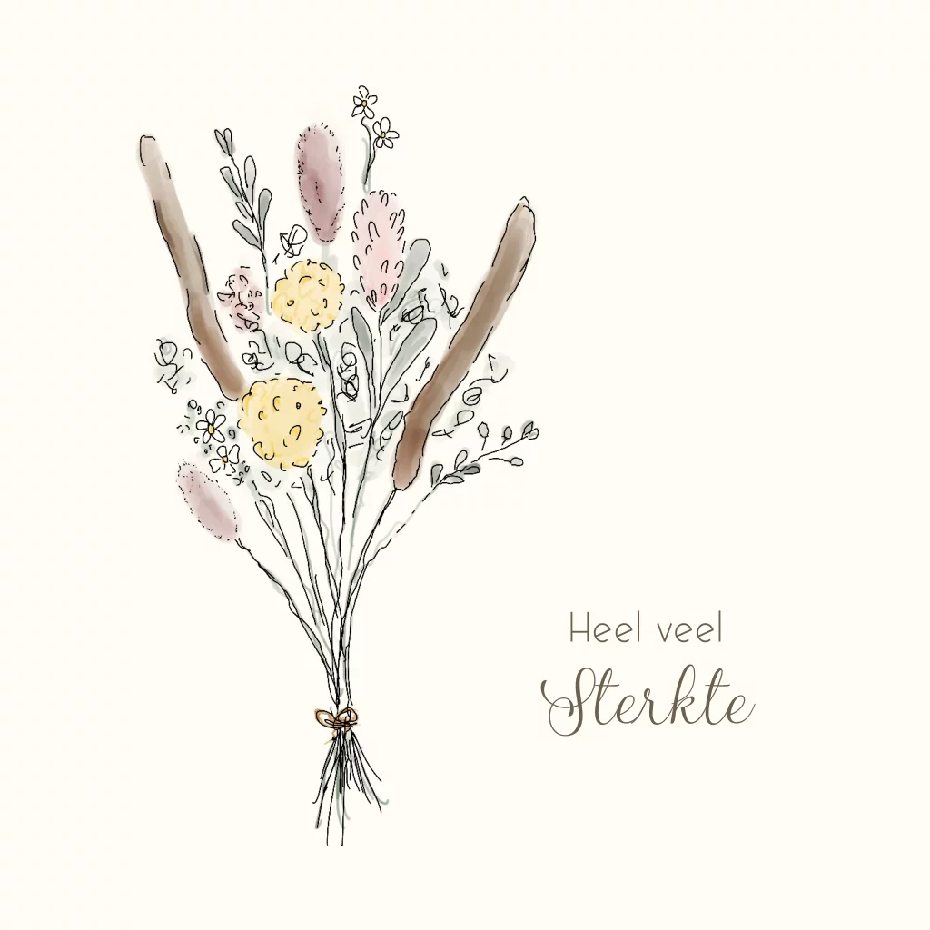 Strekte. Stijlvolle wenskaart met getekende droogbloemen. Lief kaartje om rechtstreeks te laten verzenden en zo iemand sterkte te wensen.