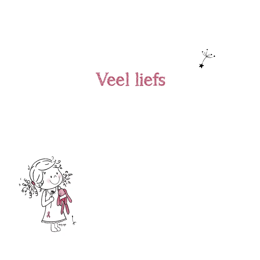 Wenskaart | Lief kaartje voor een kind om sterkte te wensen of te condoleren. Deze kaart heeft een tekening van een lief meisje met paardenbloem.