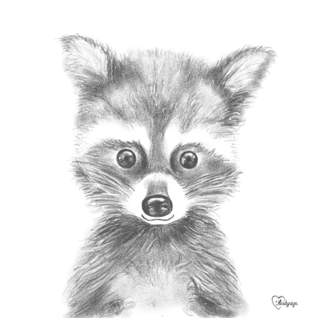 Dierenkaart met een potloodtekening van een lief wasbeertje.