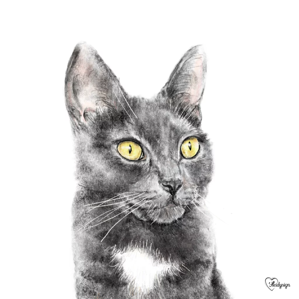 Dierenkaart met een tekening van een lief poesje. Deze grijze poes heet Iggy. Ik tekende Iggy een keer na als verrassing voor iemand.