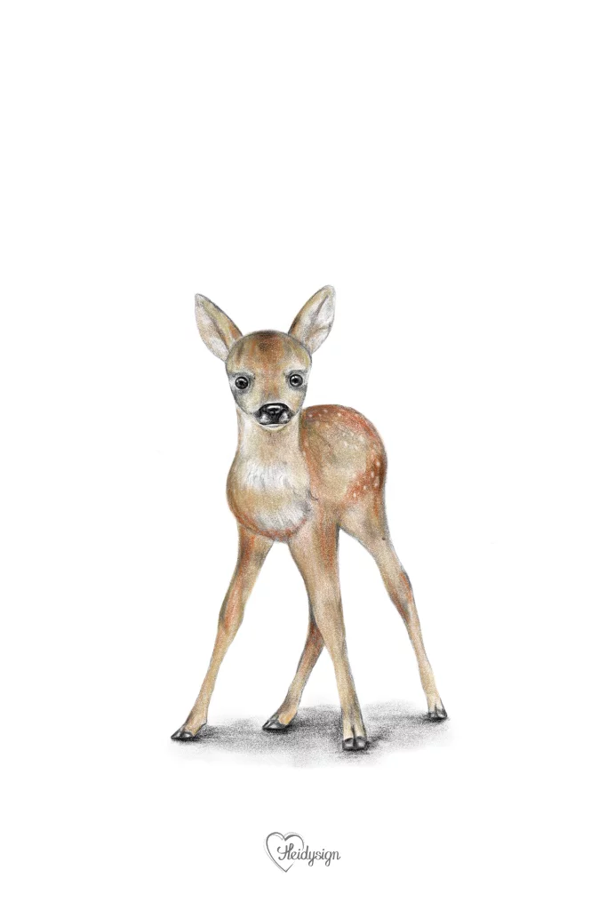 Dierenkaart met een potloodtekening van een lief baby hertje.