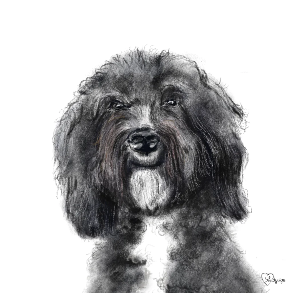 Dieren kaart met een tekening van een lieve zwart-witte hond. Dit is 1 van mijn eerste hondentekeningen.