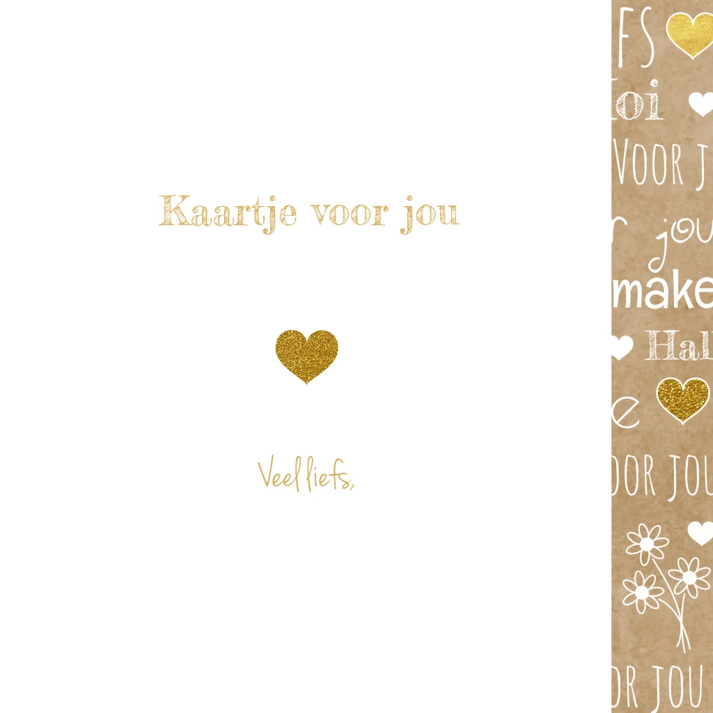 Zomaar een blijmakertje. Wie maak jij blij met deze kaart? Deze hippe kaart heeft een kraft-print en handlettering stijl met vele hartjes. Op het grote krijtbord hart kun je de tekst gemakkelijk aanpassen. TIP: Maak de kaart extra persoonlijk door de naam van de ontvanger toe te voegen.