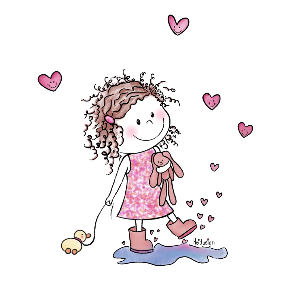 Leuke kinderkaart met een tekening van een meisje dat in de plassen stampt. De druppeltjes zijn hartjes met een lief gezichtje. Aan de binnenkant van de kaart staat een gedichtje. Deze kun je zelf nog aanpassen of verwijderen. Lief kaartje om zomaar te versturen.