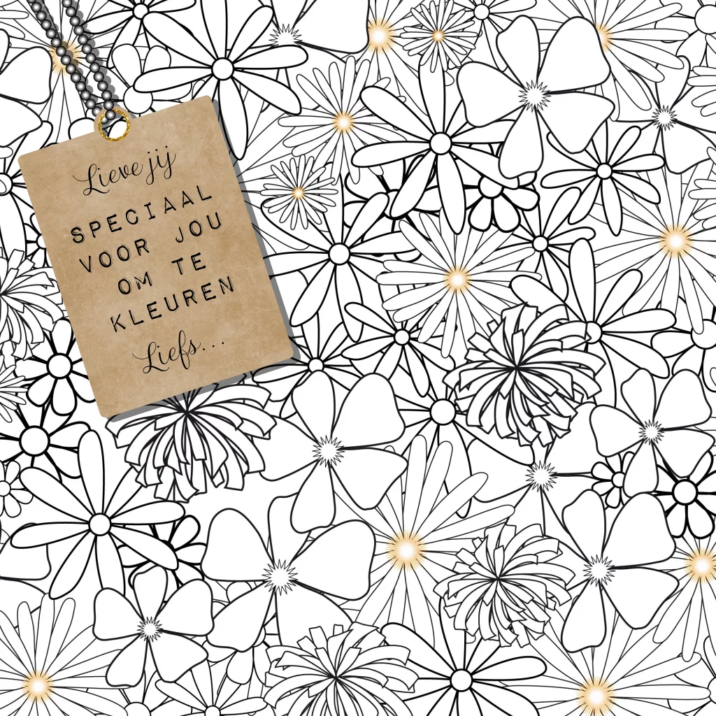 Kleurplaat kaart DIY voor volwassenen met vele bloemen