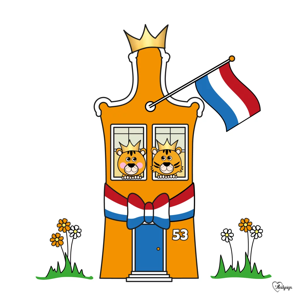 Koningsdag woningsdag oranje huis met 2 tijgers