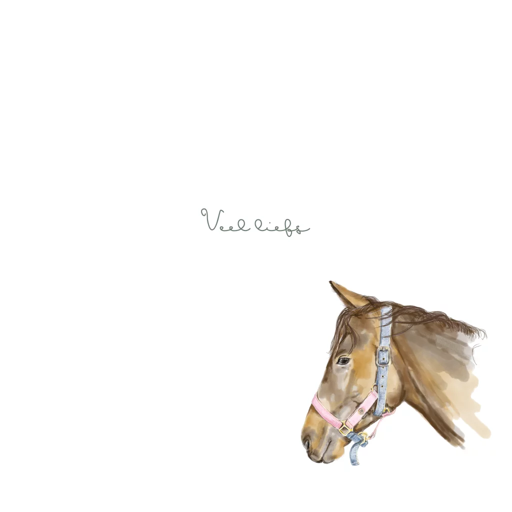 Lief wit kaartje met een tekening van een paard