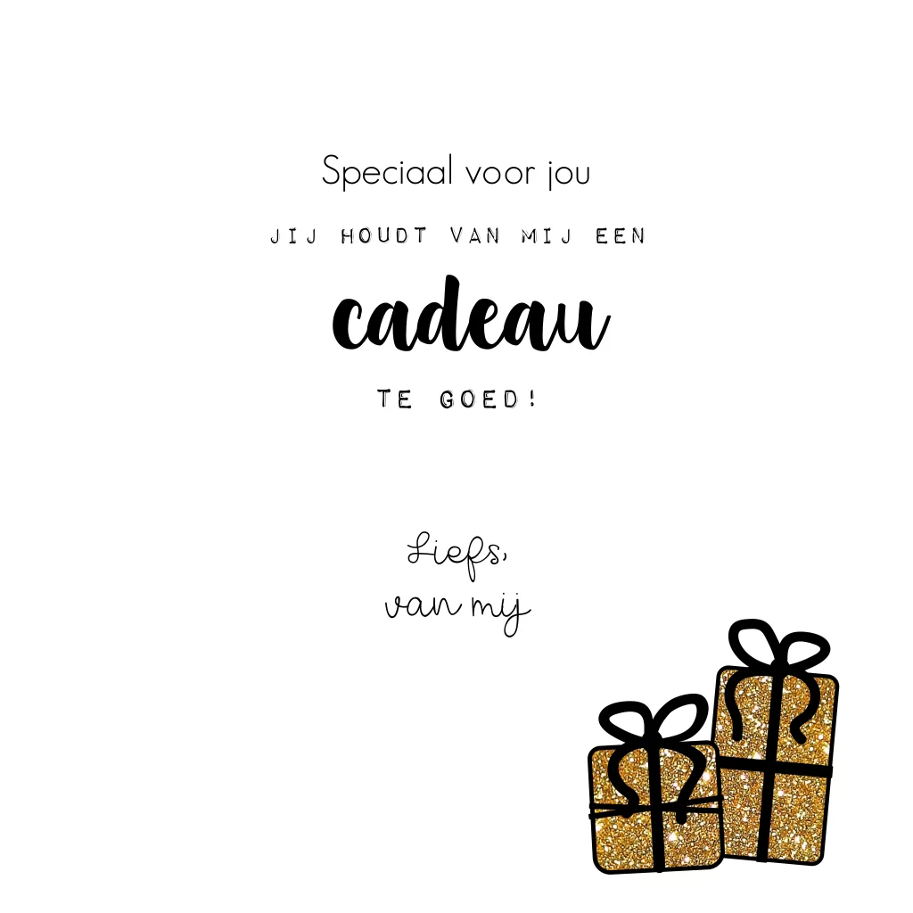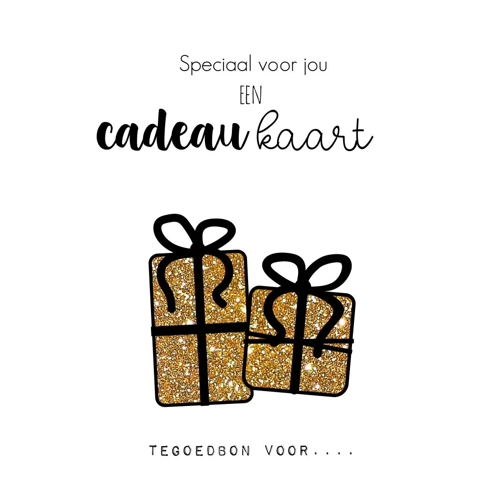 Tegoedbon kaart zwart-wit met goudkleurige cadeautjes
