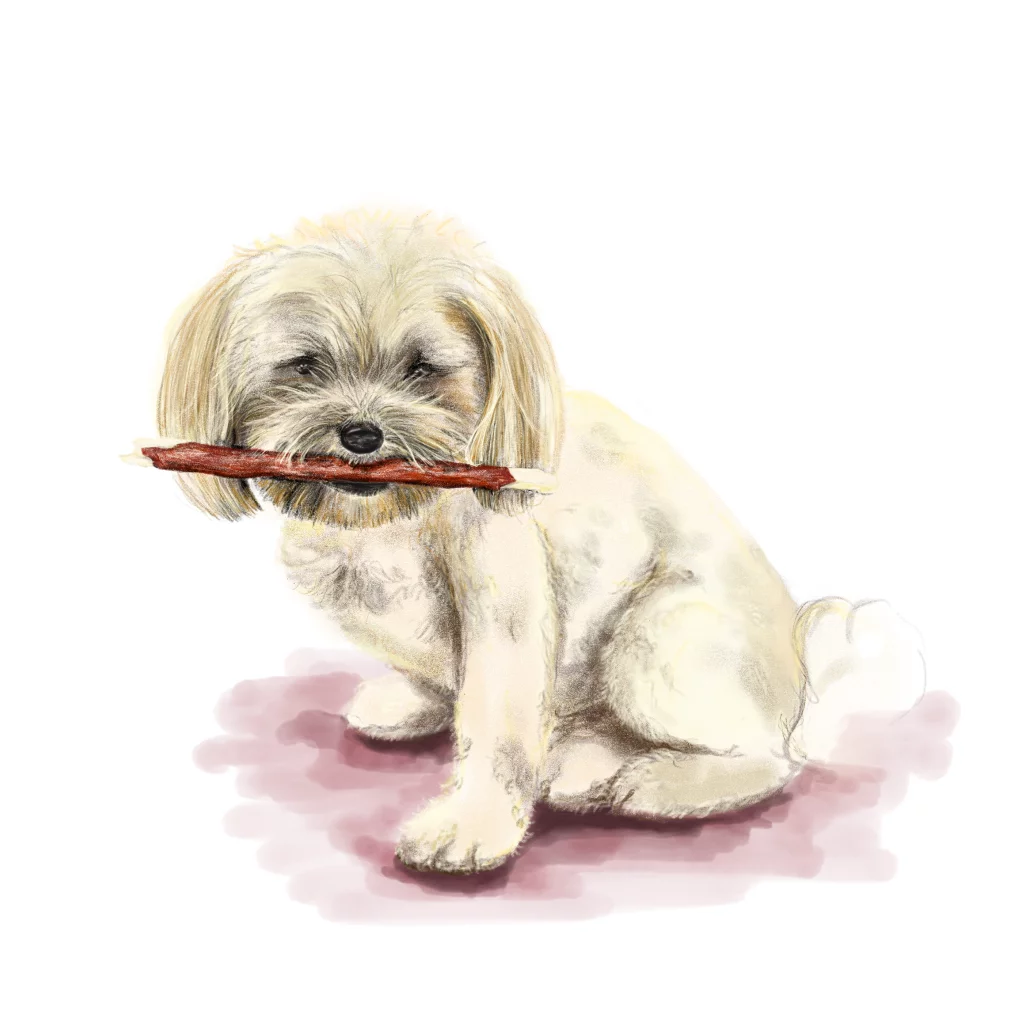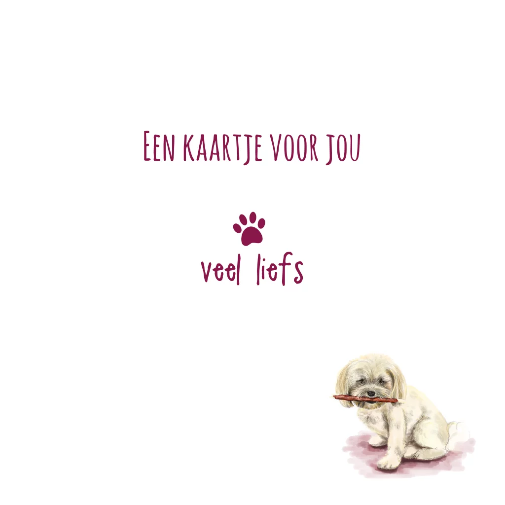 Wenskaart met een tekening van een lief, schattig hondje. Het is mogelijk er zelf een tekst aan toe te voegen.