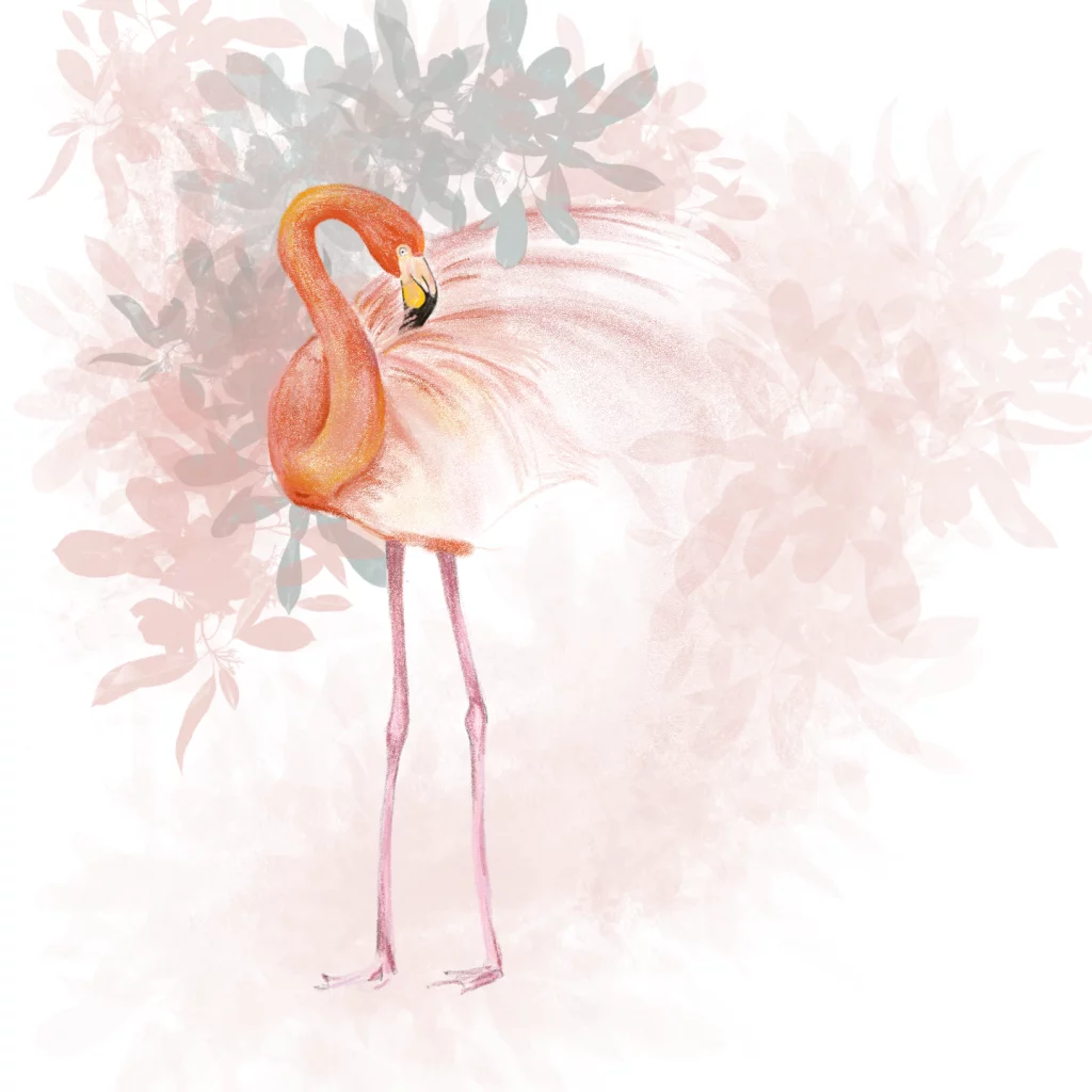 Lief, zomers kaartje met een tekening van een flamingo. Leuke kaart om zomaar te versturen.